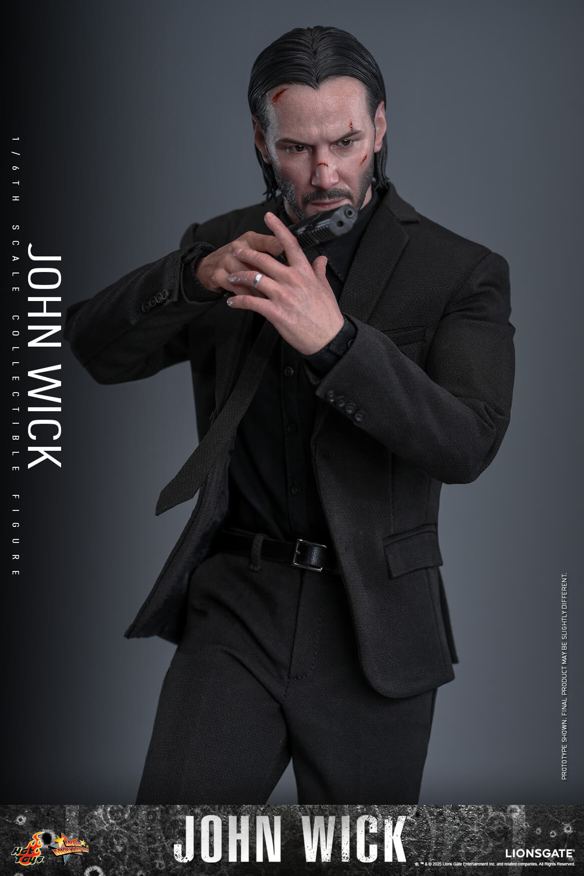 Sideshow and Hot Toys is proud to present the John Wick Sixth Scale Collectible Figure, meticulously crafted the legendary hitman. The John Wick action figure features a newly developed head sculpt with battle-damaged paint applications and separate rolling eyeballs, complemented by a meticulously sculpted, slicked-back hairstyle. With twelve interchangeable hands, from fists and commanding open gestures to suit-holding and gun-holding, this figure enables dynamic action and expressive poses.