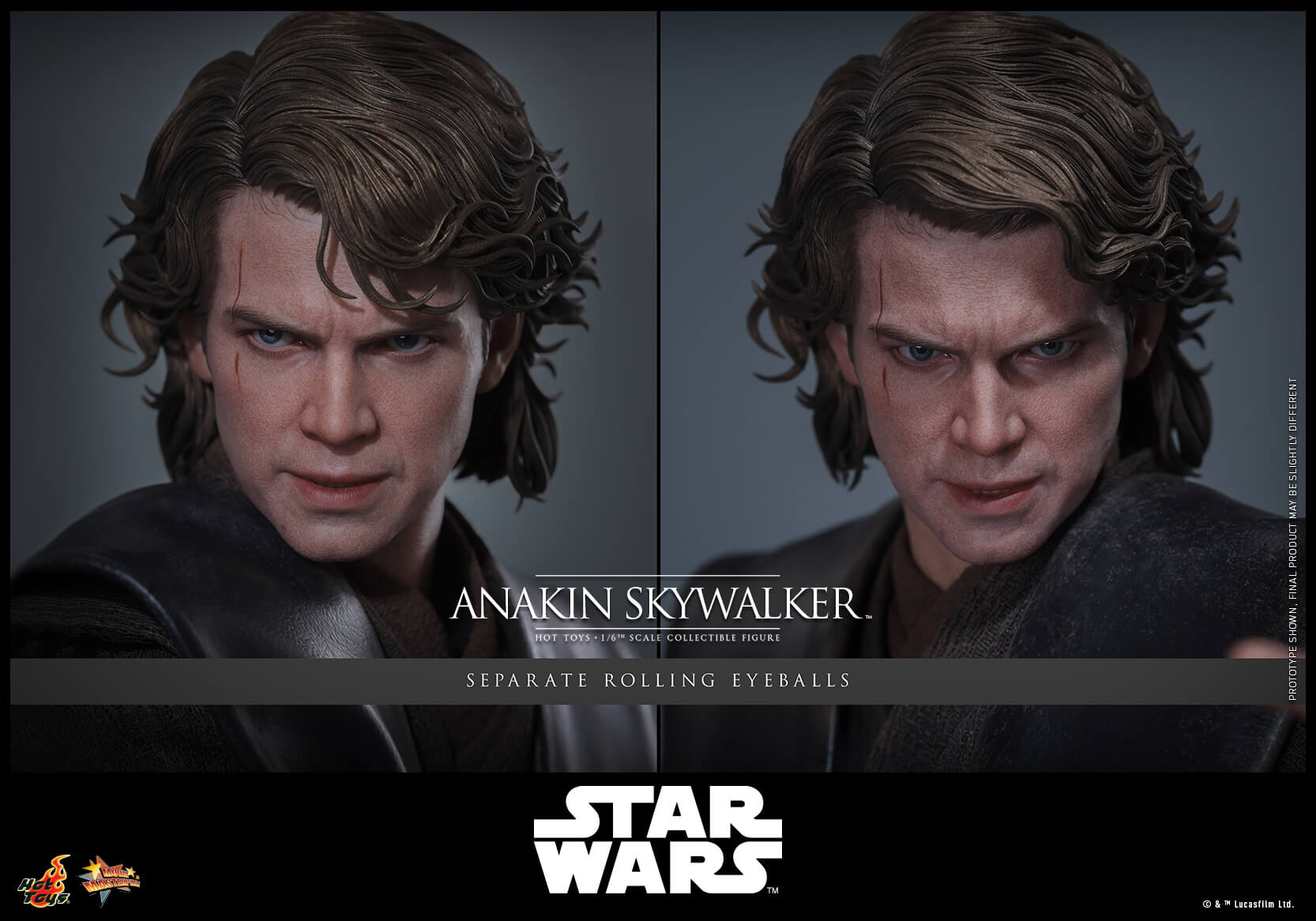 Sideshow and Hot Toys are honored to present the Anakin Skywalker™ Sixth Scale Collectible Figure, a stunning tribute to Hayden Christensen’s portrayal of the character. Crafted with exacting detail, the Star Wars action figure features a newly developed head sculpt with two pairs of interchangeable separate rolling eyeballs and two styles of interchangeable fringe sculpts to reflect Anakin’s evolving battle-worn expression. For the first time, collectors can switch between lifelike blue iris eyeballs and Sith yellow iris eyeballs to highlight his dramatic shift toward the dark side.