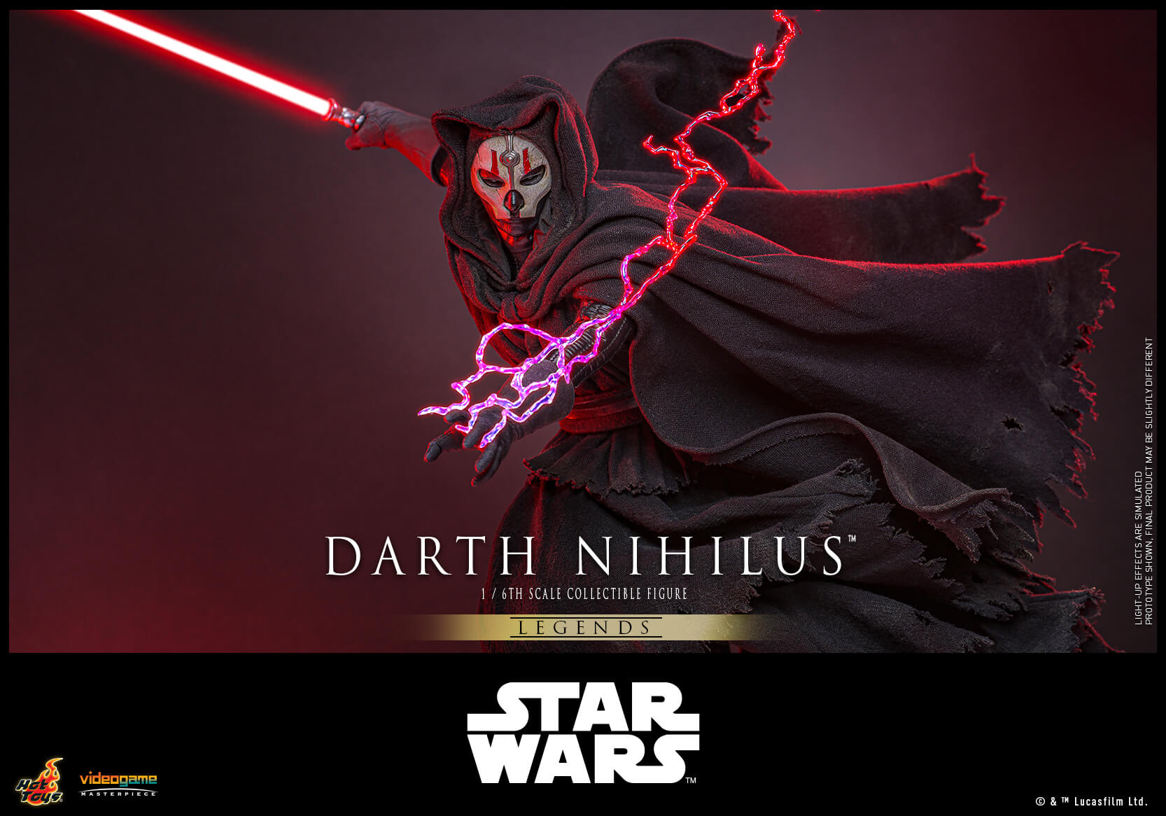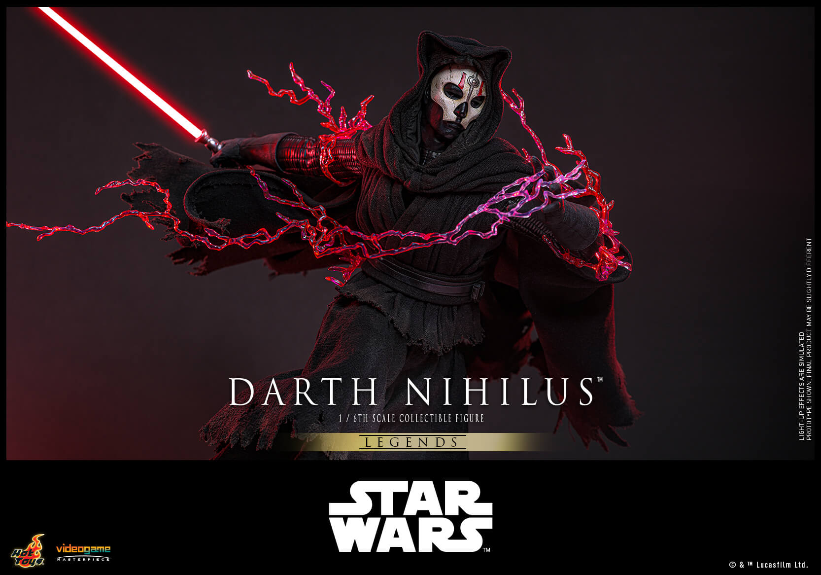 The highly accurate collectible Star Wars action figure is meticulously crafted based on the appearance of Darth Nihilus, featuring a newly developed masked head sculpt, finely tailored Darth Nihilus costume, Force Lightning effect accessories, LED light-up lightsaber, and a figure stand.